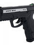Réplica de Co2 semiautomática de la pistola Steyr Mannlicher M9-A1, de calibre 4,5. La empuñadura ergonómica ha sido diseñada en un ángulo de 111 grados para mejorar el agarre. Alimentada por botella de Co2 de 12g y con corredera fija. Acabado en color negro con marcas auténticas. Incorpora carril picatinny para poner distintos accesorios como linterna o láser.